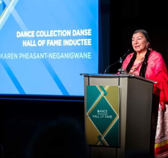 Pheasant-Neganigwane giving a speech as the DCD hall of fame inductee. Photo provided by Karen Pheasant-Neganigwane