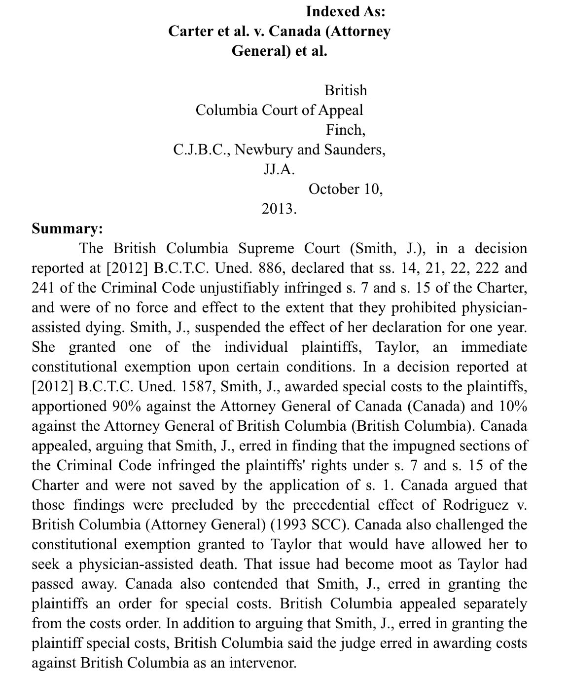 Carter explained that MAID itself exists as an exception within the federal Criminal Code, allowing physicians and nurse practitioners to provide assisted death under very specific legal precautions.