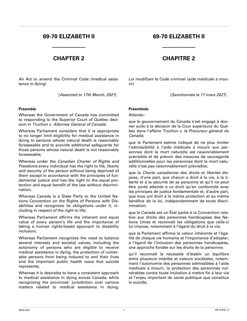 As of March 16, 2026, the Alberta government released legislation that restricts access to MAID.